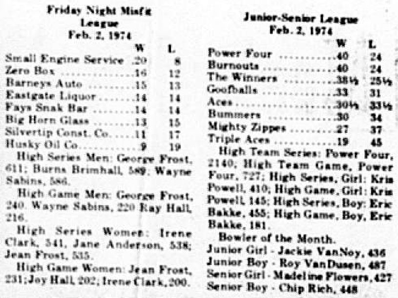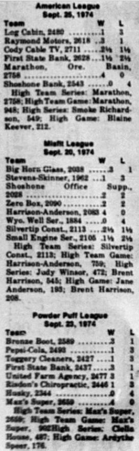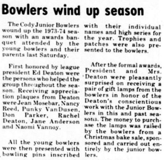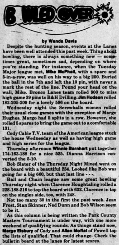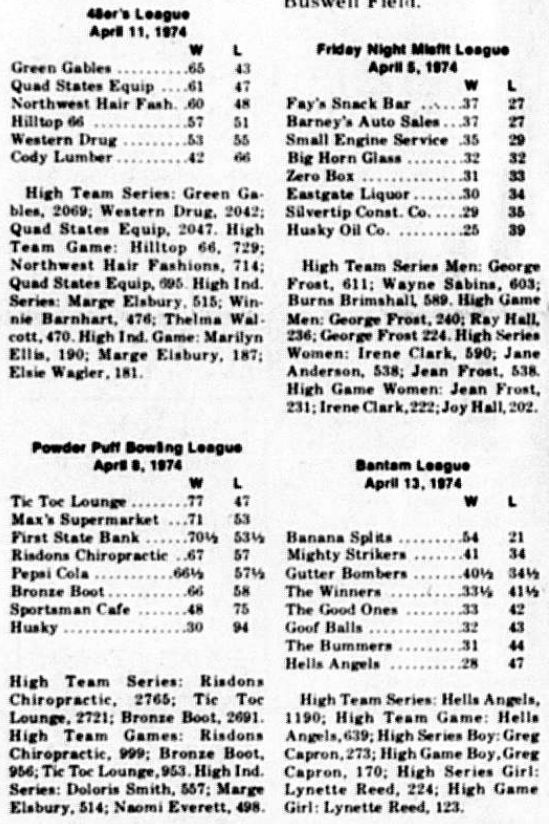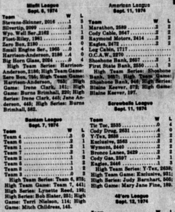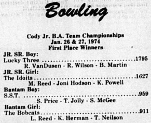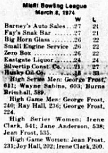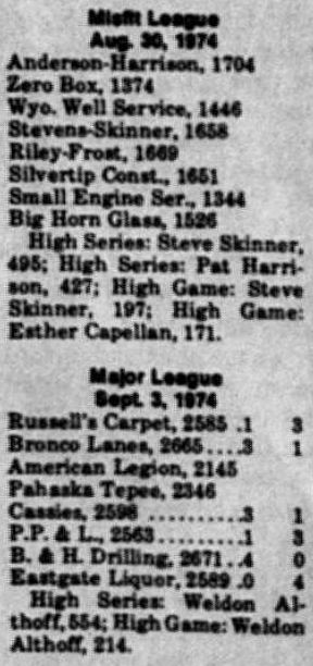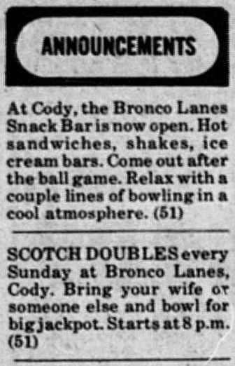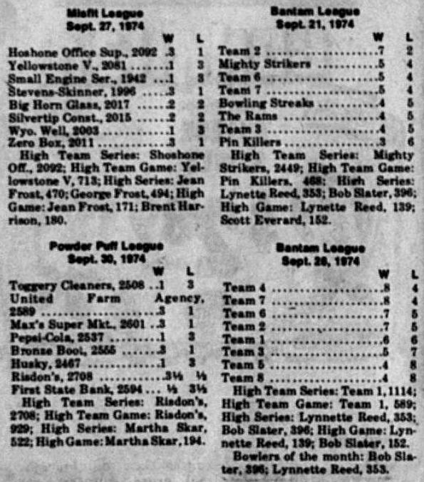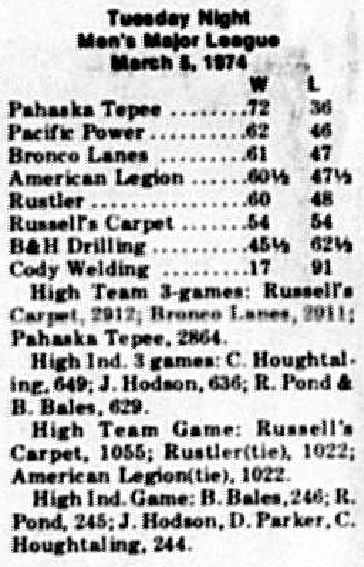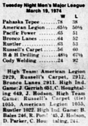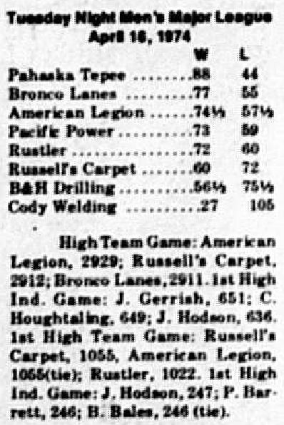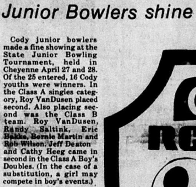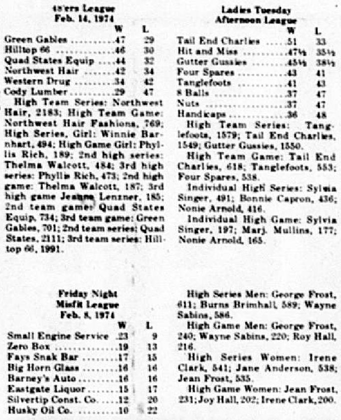 Wally Heine of Worland proposed the new bowling alley and Harold Casey was the first manager which had its grand opening Aug 26-29, 1971.