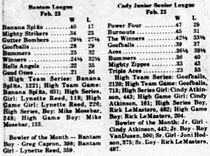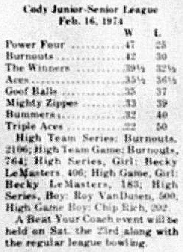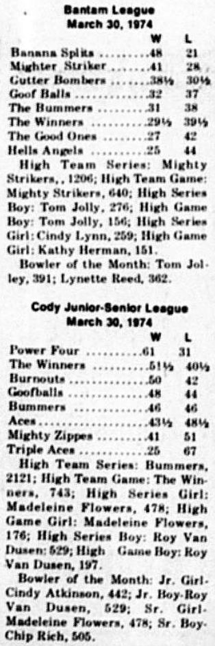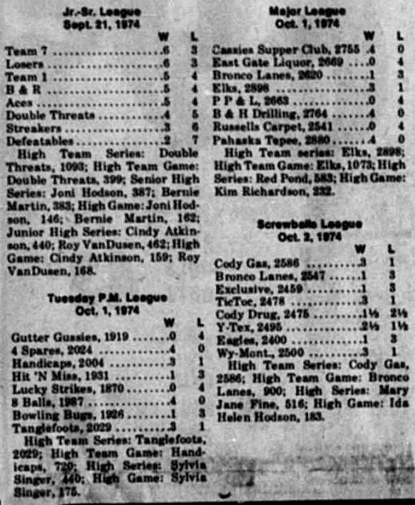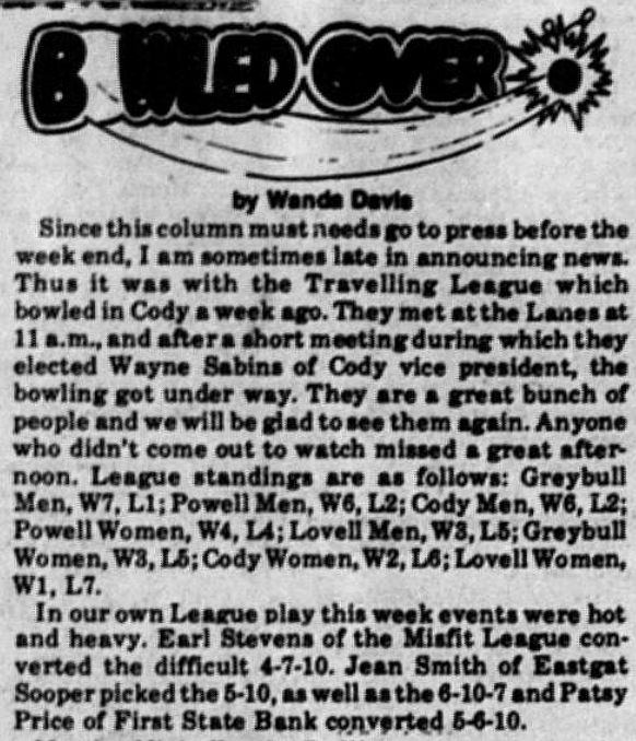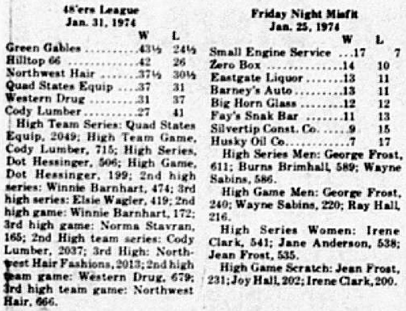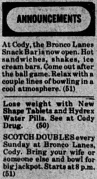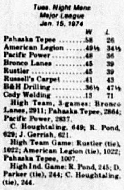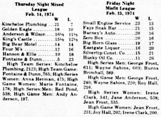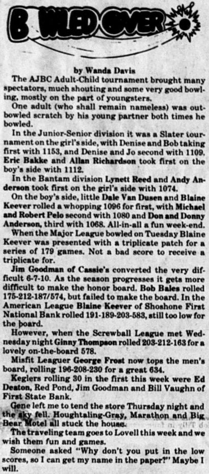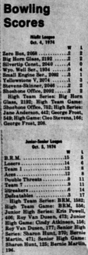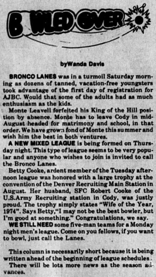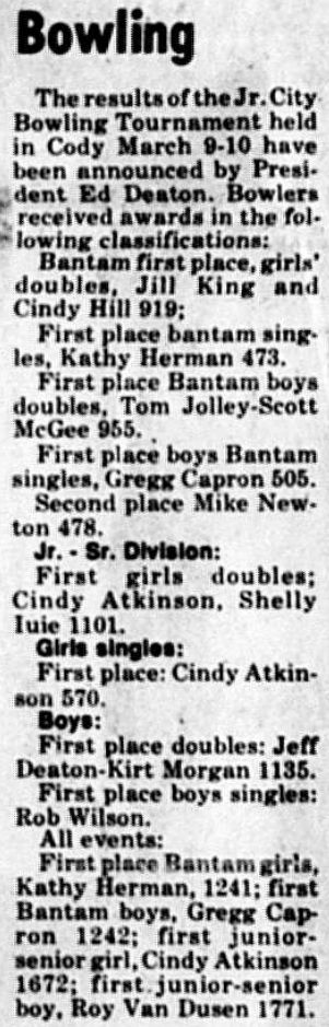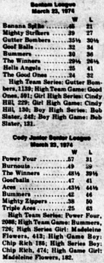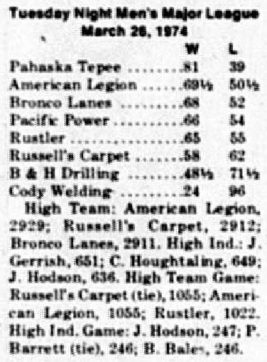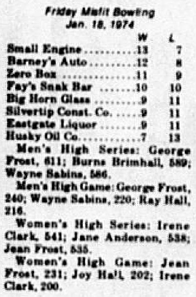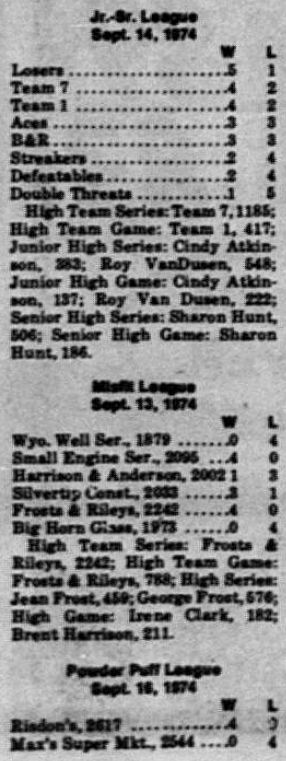 Wally Heine of Worland proposed the new bowling alley and Harold Casey was the first manager which had its grand opening Aug 26-29, 1971.