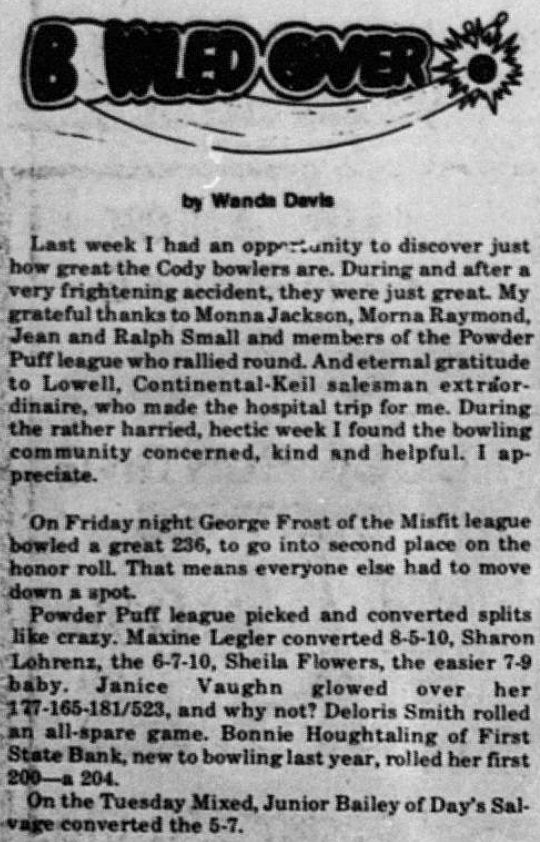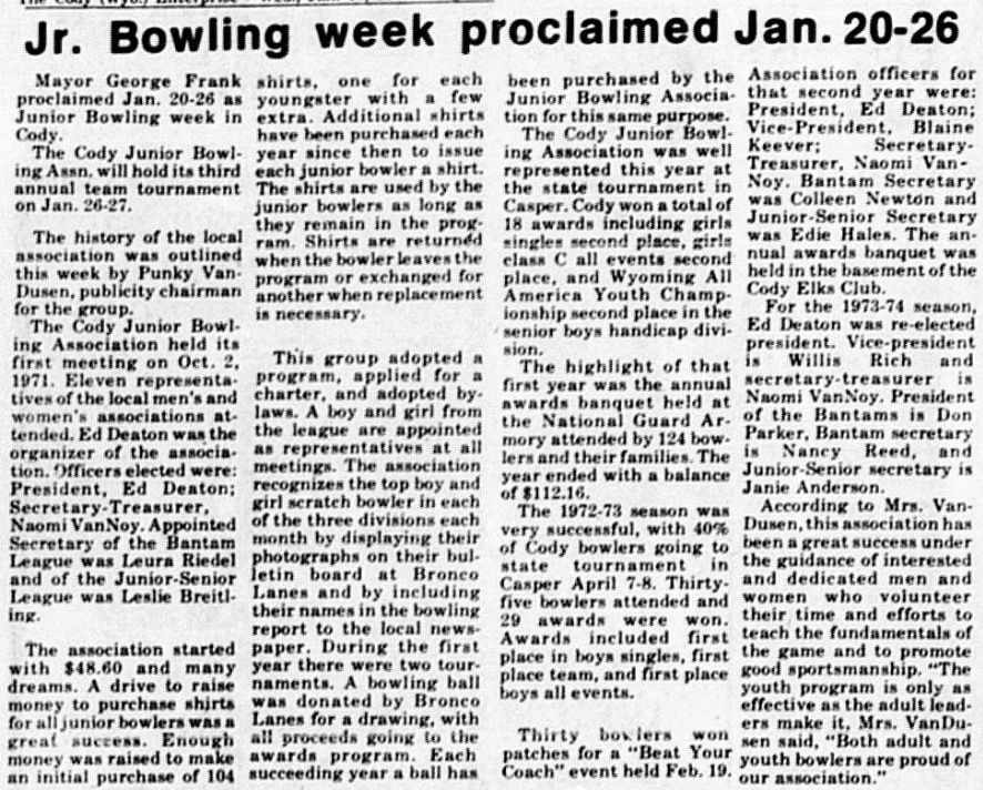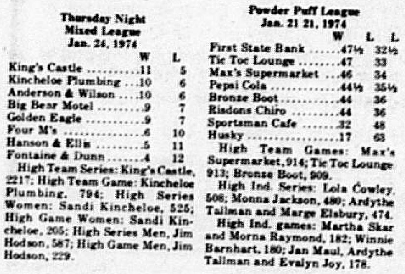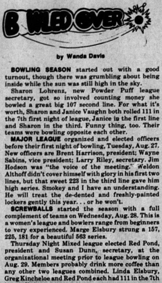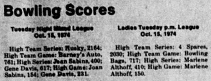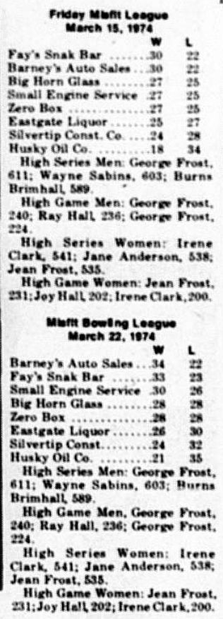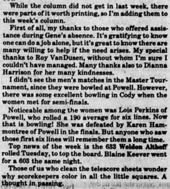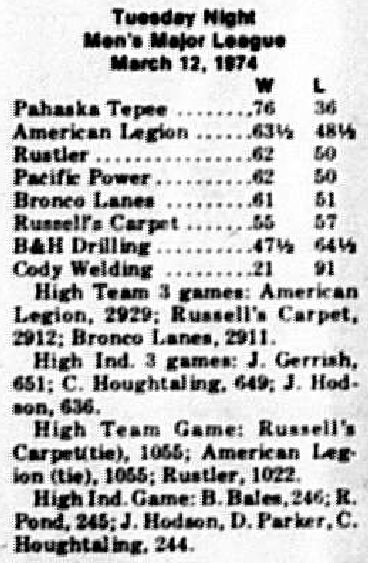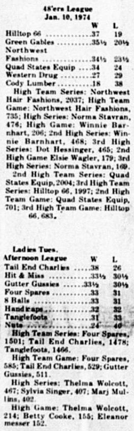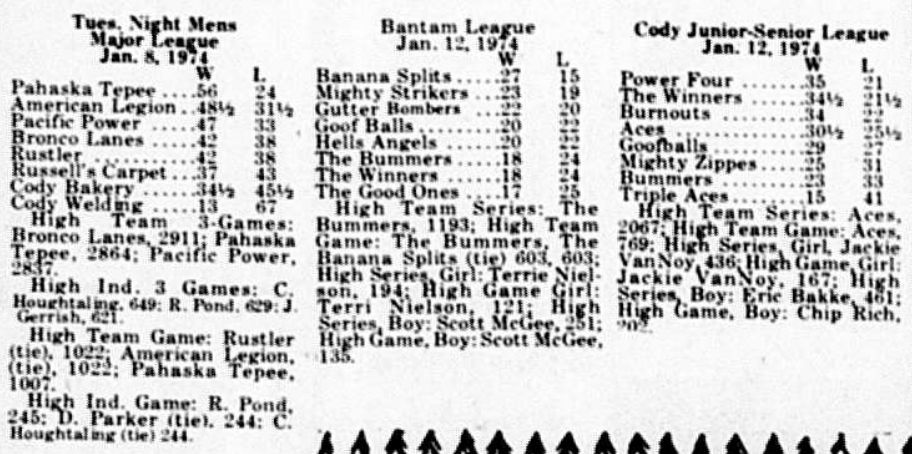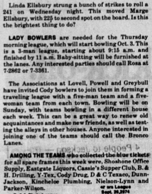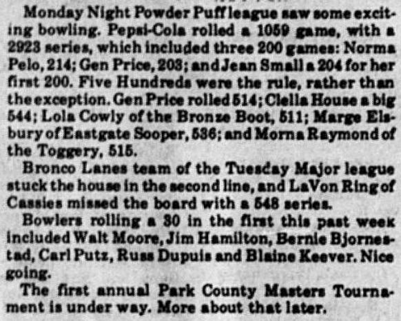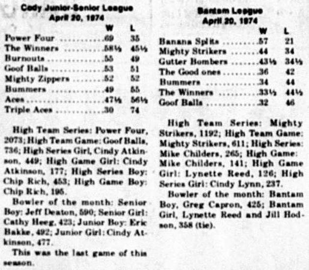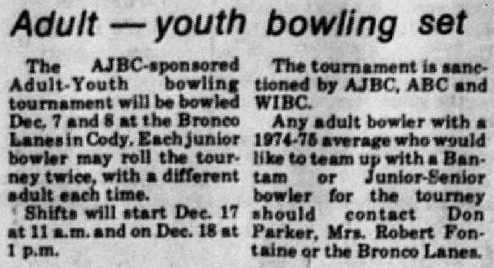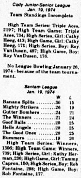 Wally Heine of Worland proposed the new bowling alley and Harold Casey was the first manager which had its grand opening Aug 26-29, 1971.
