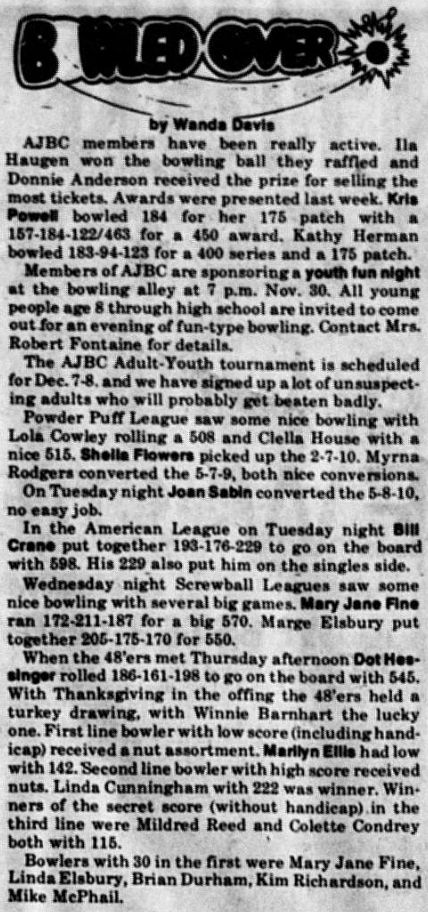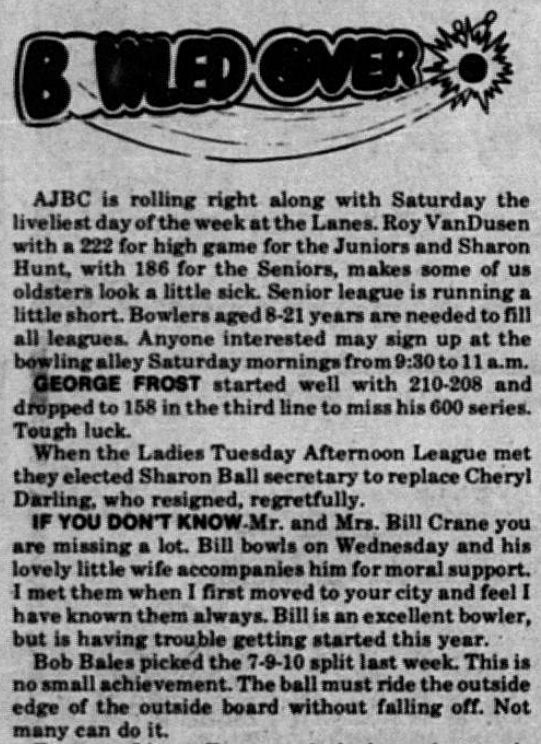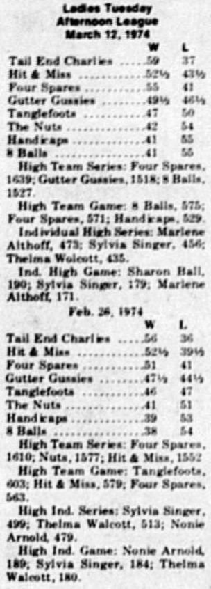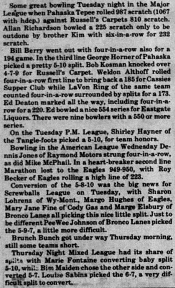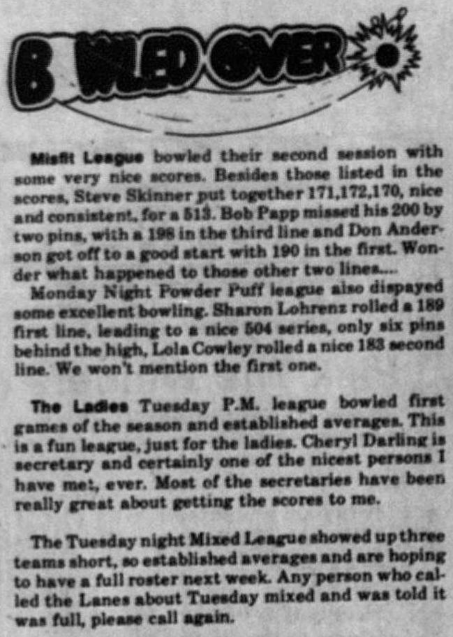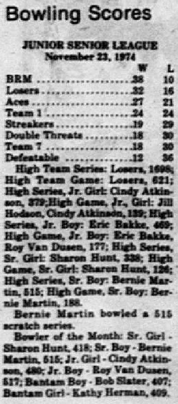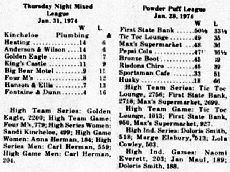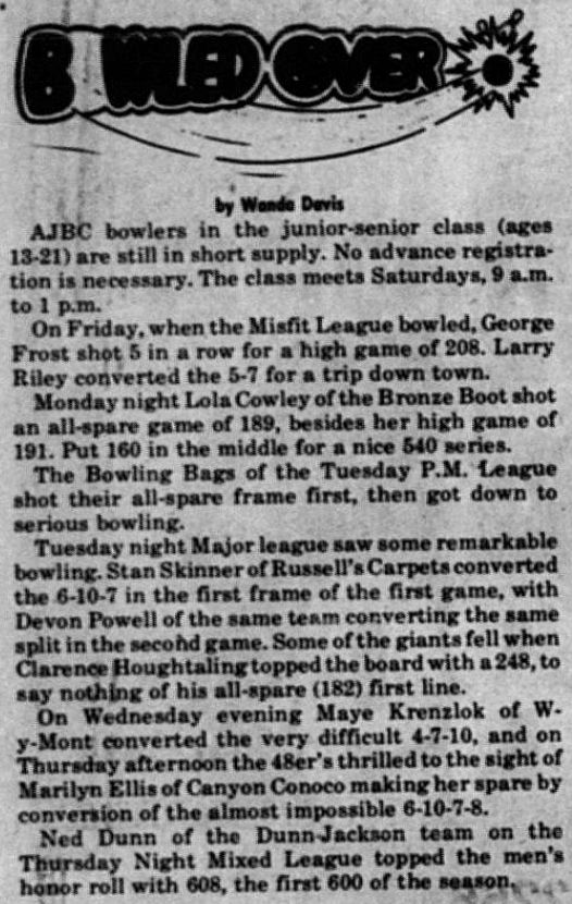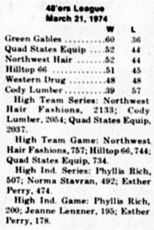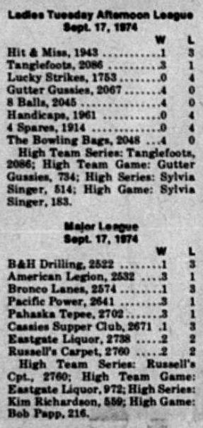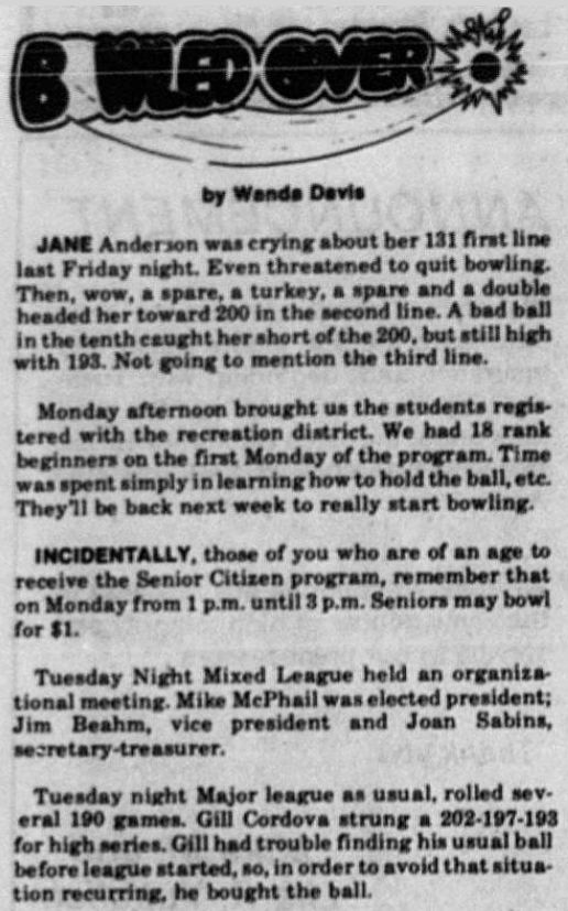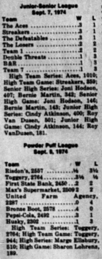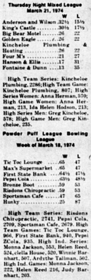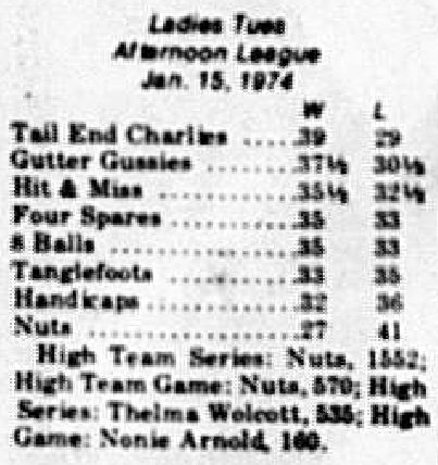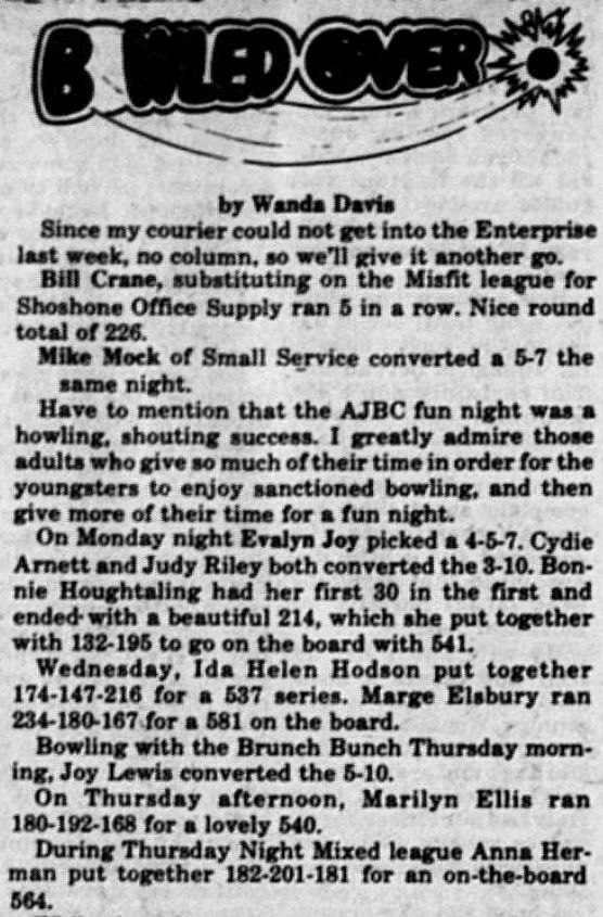 Wally Heine of Worland proposed the new bowling alley and Harold Casey was the first manager which had its grand opening Aug 26-29, 1971.