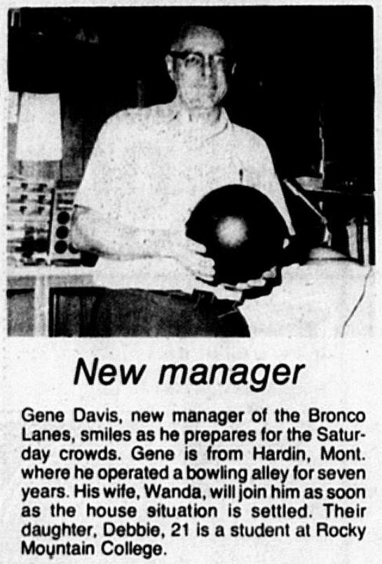Gene and Wanda Davis, from Hardin MT (where he operated a bowling alley for 6 years), took over the management in February 1974.