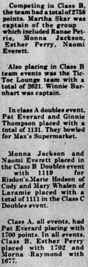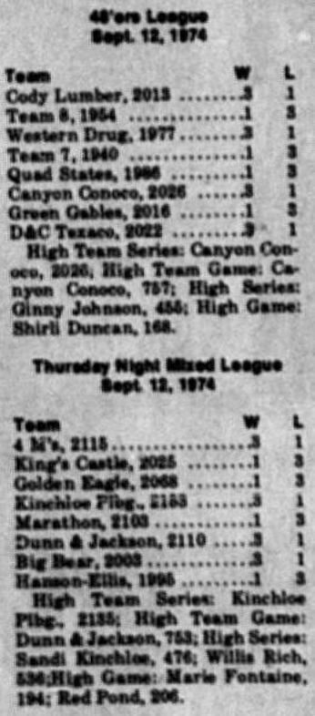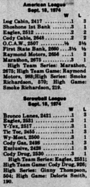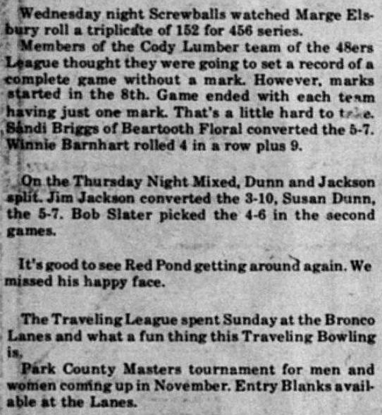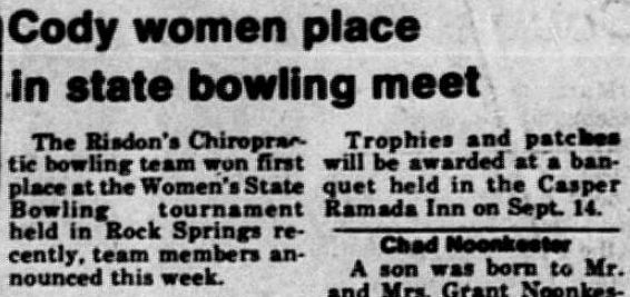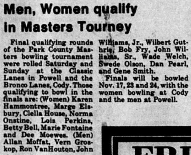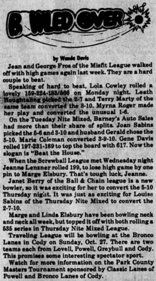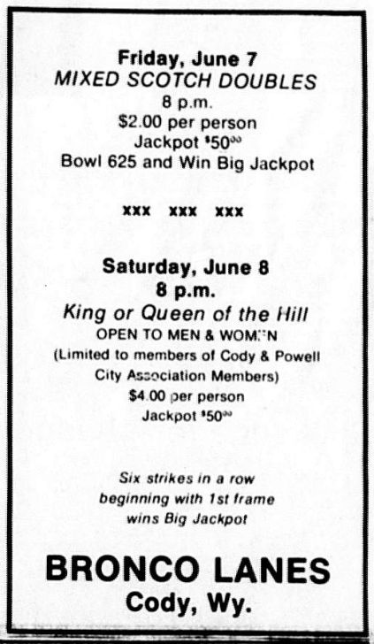 In 1987, the 39th Annual Wyoming Men's State Bowling Tournament held the Doubles & Singles Event here in conjunction with the Team Event at Classic Lanes and Grill in Powell.