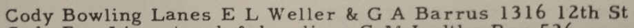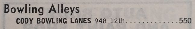 | Names: | Cody Bowling Lanes (Dec 11, 1947 - Dec 31, 1950) |
