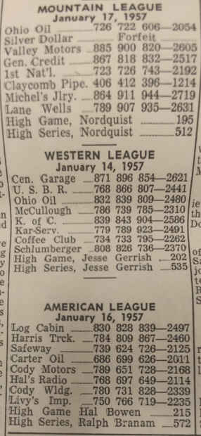 On May 5, 1958 the AMF automatic pin setters were installed by Don Alexander, the first to appear in Cody.