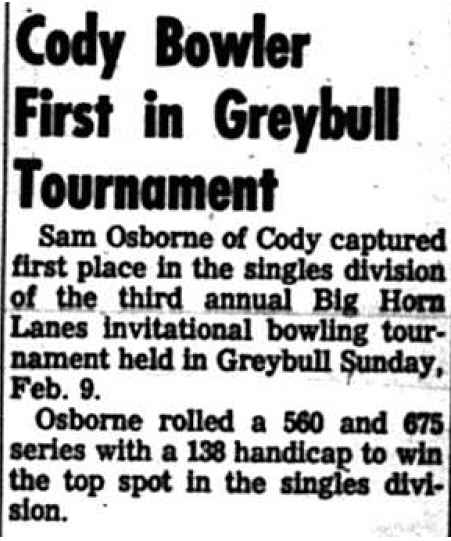 Bill and Bob Claycomb built the bowling alley in October 1954 but sells the lanes to Mr. and Mrs. Roy Smith of Thermopolis