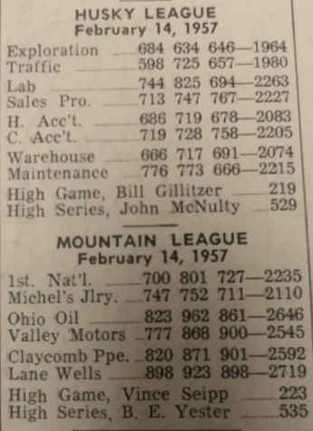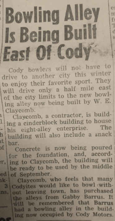 In August 1954 W. E. Claycomb purchases eight alleys from Gabby Barrus who ran Cody Bowling Lanes on 12th Street.
